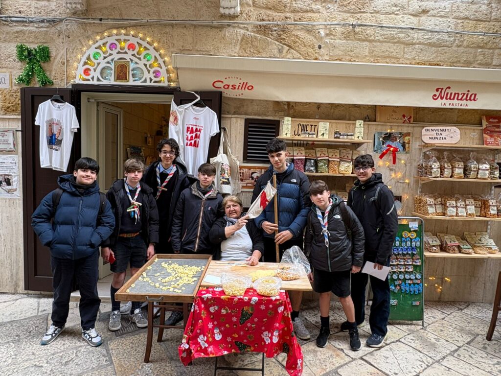 Siamo la squadriglia Falchi del Molfetta 4 e per la nostra prima impresa di squadriglia avevamo un obbiettivo chiave: volevamo conoscere una delle più antiche tradizioni culinarie baresi ovvero gli strascinati più comunemente conosciuti come le orecchiette. Queste orecchiette per la città di Bari non sono solo un semplice formato di pasta ma una tradizione antica costantemente tramandata, un patrimonio storico che ancora oggi si può osservare nel centro storico di Bari.